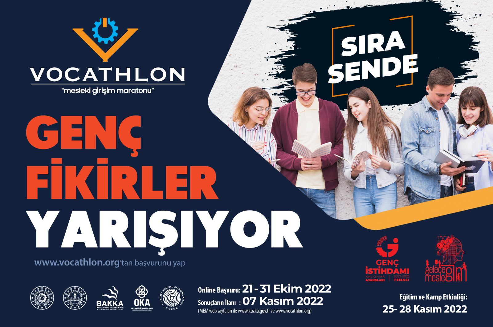 Sanayi ve Teknoloji Bakanlığı tarafından 2019 yılında ilan edilen "Mesleki Eğitim Teması" kapsamında ilk kez KUZKA ile Bölge İl Milli Eğitim Müdürlükleri iş birliğinde düzenlenen Vocathlon: Mesleki Girişim Maratonu Programı’nın dördüncüsünün başvuru süreci başlıyor. Bu yıl 3 Kalkınma Ajansının ve Bölgelerindeki İl Milli Eğitim Müdürlüklerinin işbirliği ile gerçekleştirilecek Program 21 Ekim 2022 tarihi itibarıyla başvurulara açılacak.