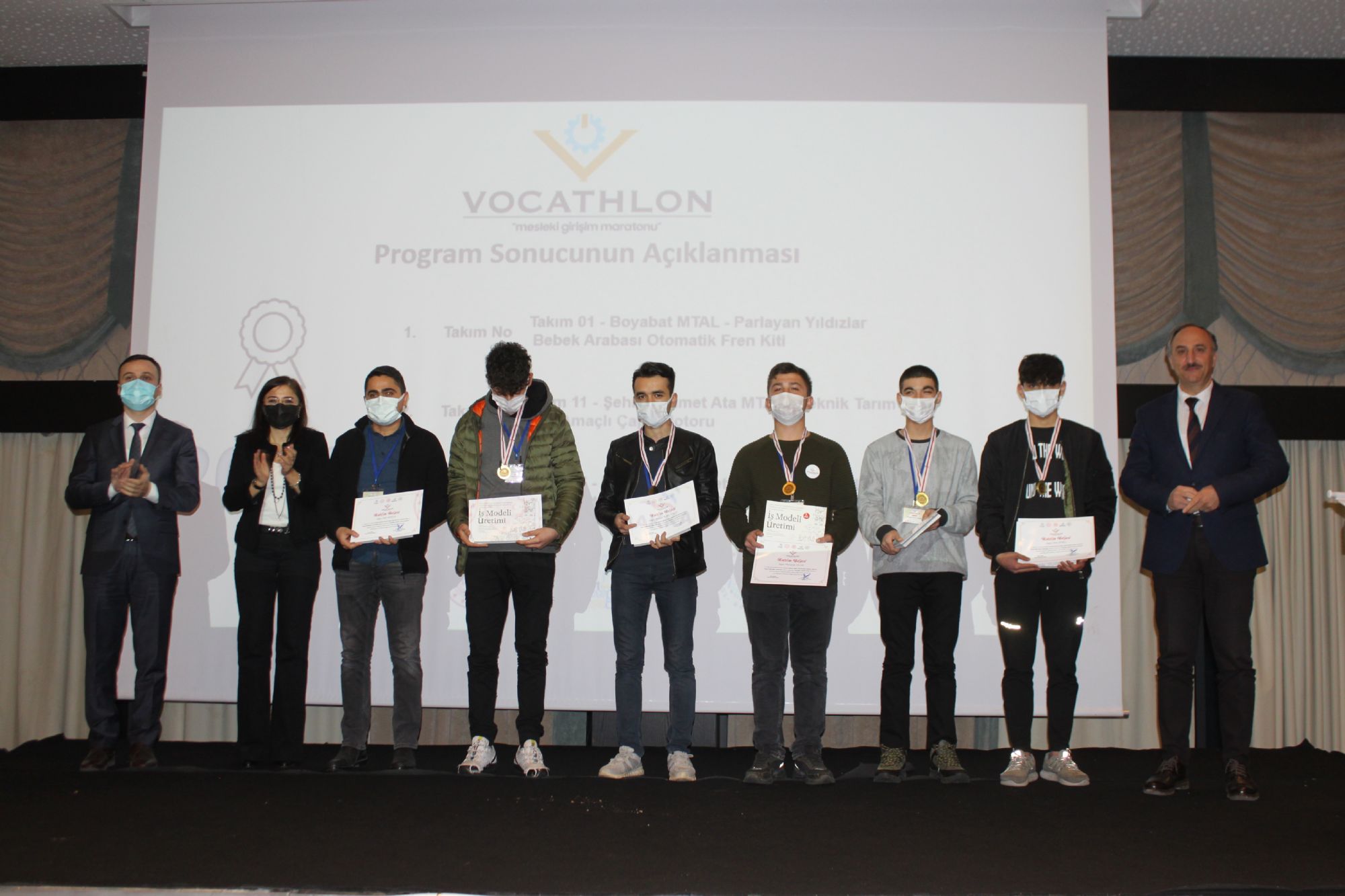 TR82 ve TR81 Bölgeleri İl Milli Eğitim Müdürlükleri iş birliğiyle gerçekleştirilen "Vocathlon: Mesleki Girişim Maratonu" 2021 yılı programı takımların jüri sunumlarının ardından düzenlenen kapanış töreniyle sona erdi. Vocathlon kapsamında meslek lisesi öğrencilerinin hazırladığı 3 proje ise yapılan değerlendirme sonunda başarılı bulundu. 14 takımın katıldığı programda hazırlanan projelerden Sinop Boyabat ilçesinden Boyabat Mesleki ve Teknik Anadolu Lisesi Parlayan Yıldızlar takımının hazırladığı “Bebek Arabası Otomatik Fren Kiti” projesi birinci olurken, Çankırı Şehit Mehmet Ata Mesleki ve Teknik Anadolu Lisesi Teknik Tarım takımının hazırladığı “Çok Amaçlı Çapa Motoru” projesi ikinci oldu. Yapılan değerlendirme sonunda üçüncülüğe ise Sinop Prof. Dr. Necmettin Erbakan Mesleki ve Teknik Anadolu Lisesi Beyaz Melekler takımının “Hasta Destek Sistemi (HDS)” projesi layık görüldü.